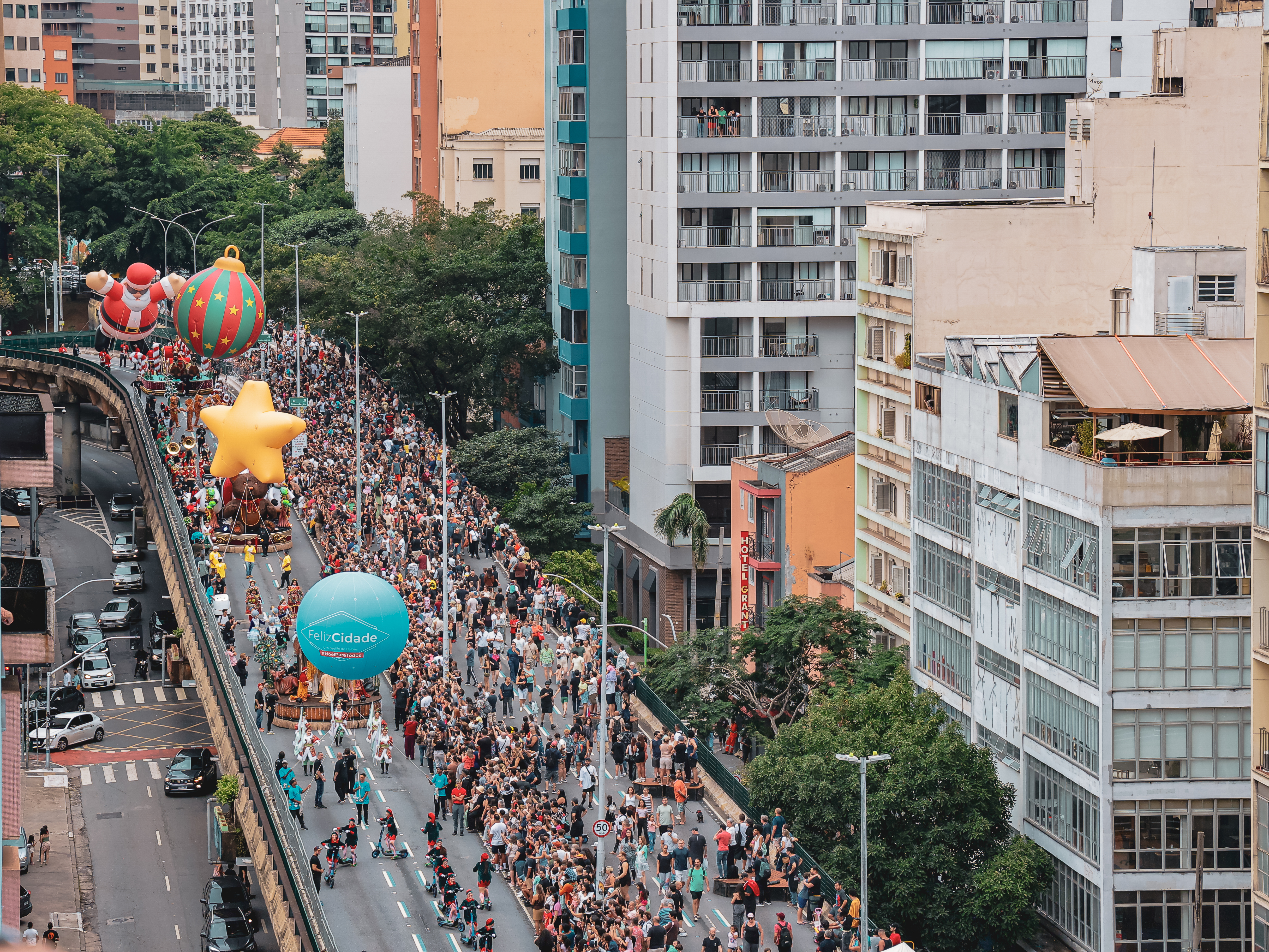 FelizCidade foi a primeira parada natalina de balões gigantes de São Paulo, criada pela Joia | Experiências que Transformam e realizada no Elevado Presidente João Goulart (Minhocão), em 13 de dezembro de 2025.